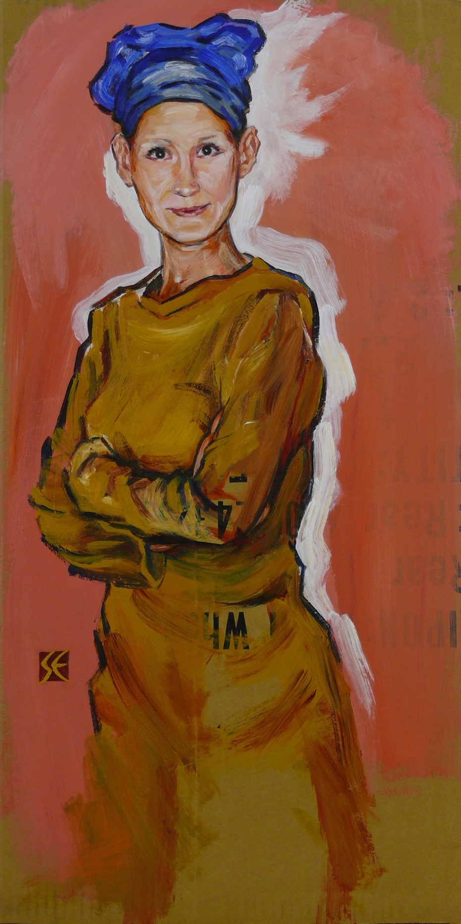 Lifesize portrait, acrylic on 34 x 42 cardboard, freehand from photo reference.